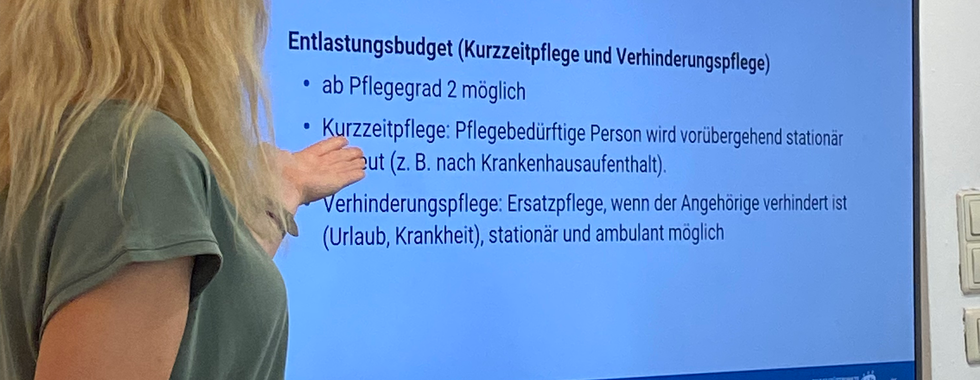 Ramona Dilk, Referentin des Pflegestützpunkts Lichtenberg, führte fachkundig in das Thema ein. In bisherigen Veranstaltungen lag der Fokus häufig auf den Leistungen für Pflegebedürftige. Dieses Mal stand im Mittelpunkt, welche Unterstützung pflegende Angehörige selbst erhalten können – sei es finanzieller, organisatorischer oder beratender Art.